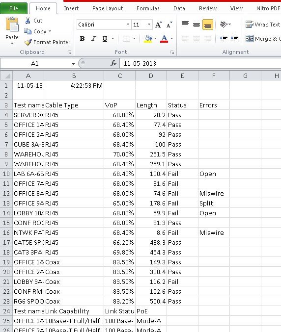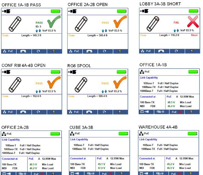 - Ability to define cable name, save cable tests and print ALL results (cable testing & network testing)