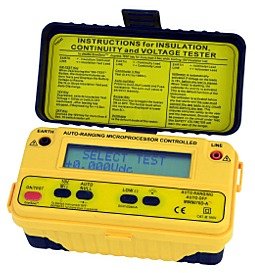 ● Microprocessor-controlled. ● Automatic voltmeter AC/DC at Start/Reset. ● Auto range ● Auto off. ● Battery test. ● Battery test at switch ON/Reset. ● Safety voltmeter before each test. ● Auto discharge on all test and all ranges. ● Leads Auto-Null key. ● Test Auto-Stop. ● Smart hold & stop on voltmeter ac/dc. ● Ener-Save feature to extend battery life. ● Continuity short circuit current > 220mA. ● Continuity open circuit voltage of 5Vdc. ● Nominal voltage @ 1mA on all insulation ranges. ● Accept 8 rechargeable batteries or Alkaline of normal. ● BS 16 edition.